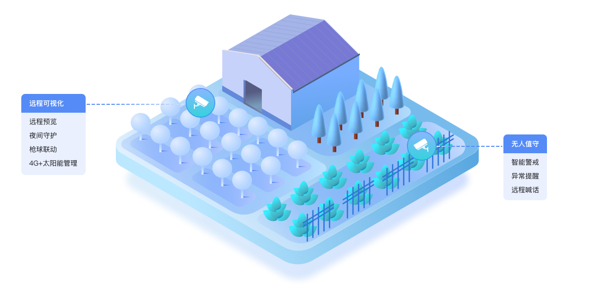 圍繞戶外管理、種植養殖、水利河長管理、森林防護等場景,針對地域偏遠、網絡和供電不便、維護成本高的痛點,為管理部門、種植養殖戶提供太陽能視頻管理方案
