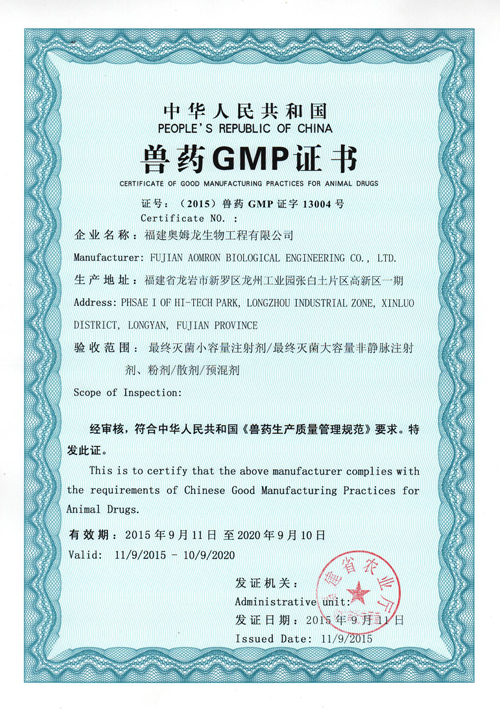 图1:兽药GMP证书