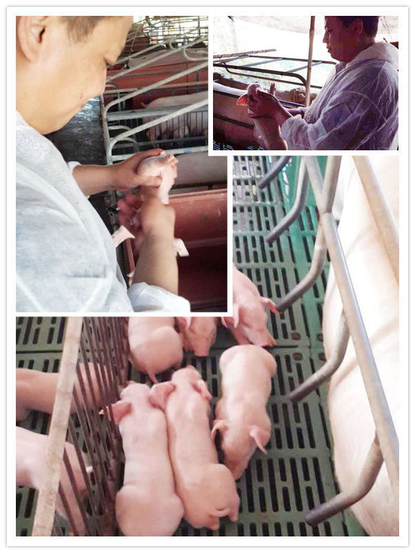 自从用了姆益健 母猪奶水充足 仔猪皮红毛亮