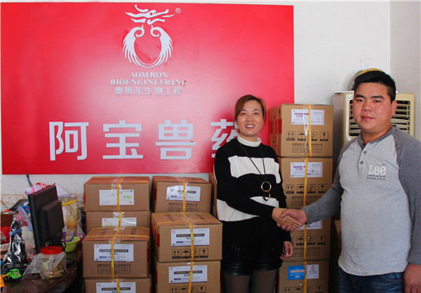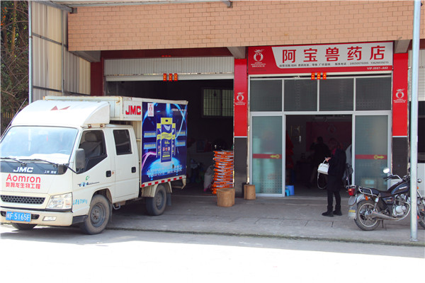 2017年3月27日上午,我司销售部人员将满满一车产品送至奥姆龙公司合作加盟店——阿宝兽药!