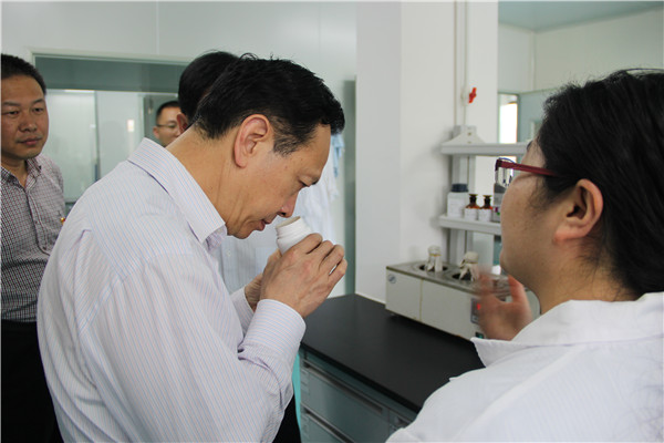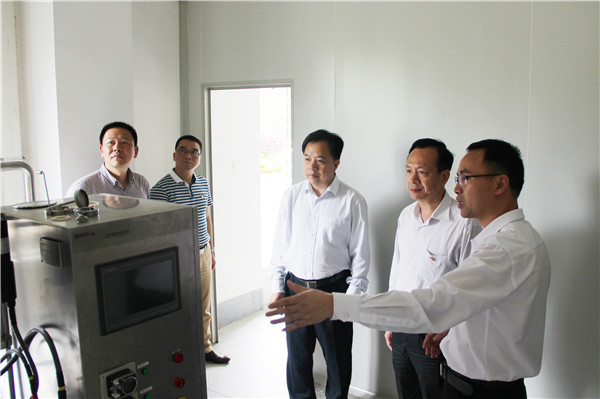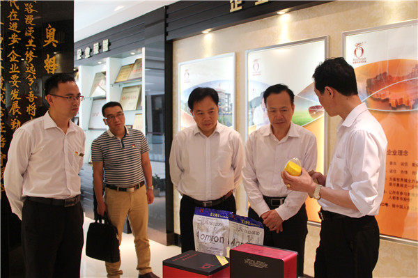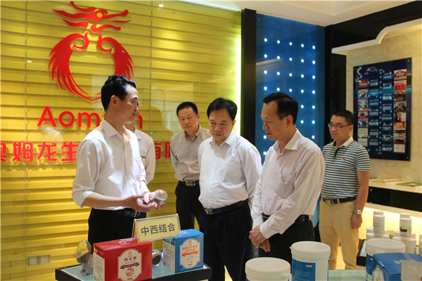 奥姆龙公司董事长林振雁先生在展厅热情地向领导们介绍了公司整体的发展规划及优质产品。领导们对公司微生物新型科技项目产生浓厚的兴趣,公司生产部经理、党支部书记曾战荣陪同领导一行参观了微生物研究中心和微生物发酵车间。