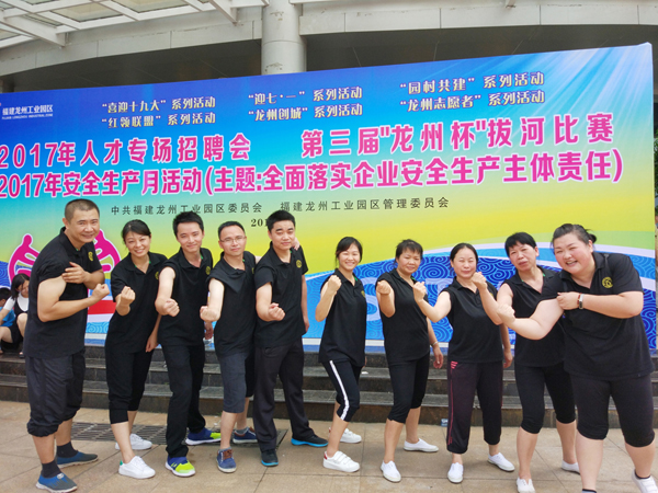 为丰富全体员工的精神文化生活,促进在职员工之间的交流,发扬团队精神,增强凝聚力,公司于2017年6月29日参加了福建龙州工业园区举办的第三届“龙州杯”拔河比赛。