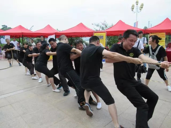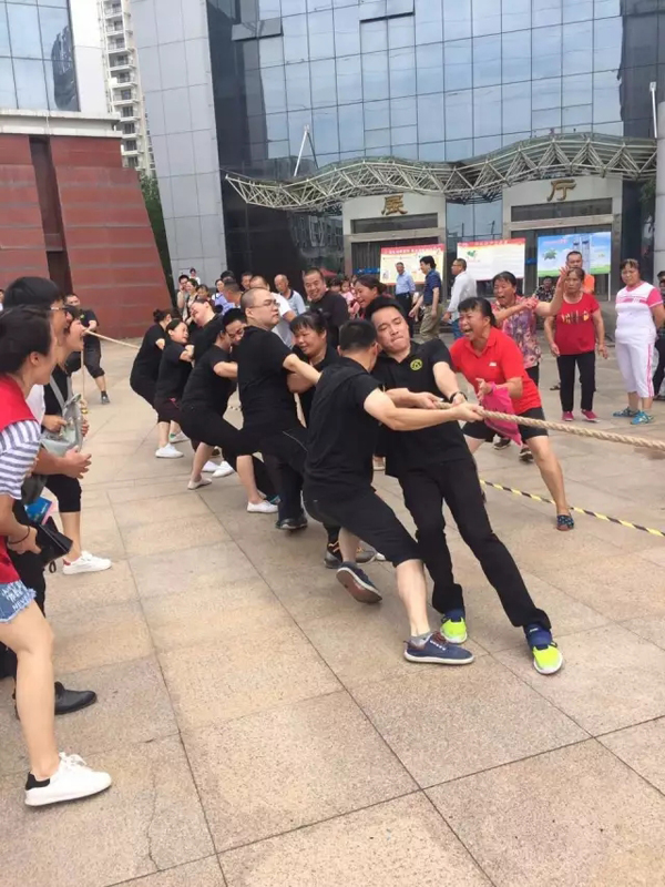当比赛的哨声响起,我们参赛的队员们紧握长绳,卯足了劲拼命往后拉!公司同事也在队伍旁边助阵!比赛队员呐喊“一二加油,一二加油”,哨子声、呐喊声此起彼伏,现场激烈的比赛将整个活动推到了高潮!