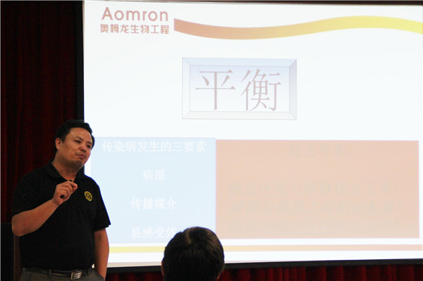 此次会议特邀请到了原解放军兽医大学预防兽医学博士、军事医学科学院药理学博士、美国明尼苏达州立大学医学研究院博士后陶增思博士。陶增思博士为销售精英技术分享了《猪病发生与微生物制剂》,陶博士以渊博的知识、丰富的经验给大家上了受益匪浅的一堂课。