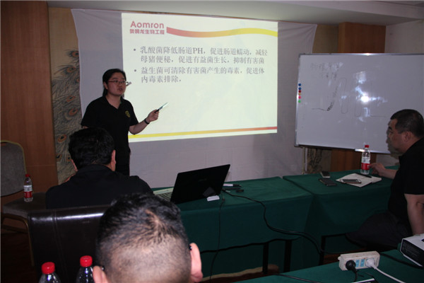 接下来由公司技术总监郭金权老师、微生物研发中心主任邹柳、技术部徐见光为销售精英们分别带来《公司优势产品介绍》、《益生菌与肠道》、《养猪之道》的专题分享。