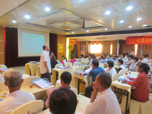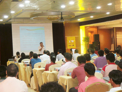 2012年8月11日,奥姆龙公司在广东阳春召开母猪健康繁殖专业研讨会,会议由公司技术部余建老师主讲。通过此次会议让阳春养殖户更懂得如何合理用药,避免滥用药、重复用药,了解不仅要选好药、更要选对药。