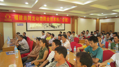 2012年8月23日,福建奥姆龙动物药业有限公司营销总监杨思齐和技术总监郭金权在连江开展《猪场夏防要点——如何提升母猪健康繁殖》技术交流会议,针对养殖户面临的问题进行面对面的交流。