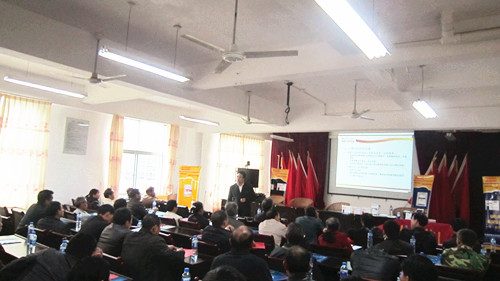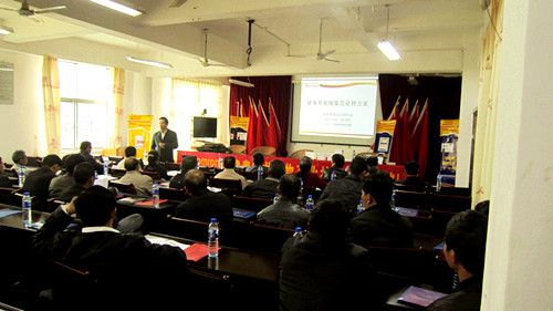 2012年12月1日,在上杭中都开展技术交流会,共到会100人,奥姆龙技术总监郭金权先生就“猪场常见现象及处理措施”与到会人员交流,会场气氛热烈 。