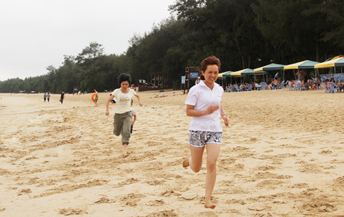 图4  沙滩上,女子组财务部陈琴顺一马当先