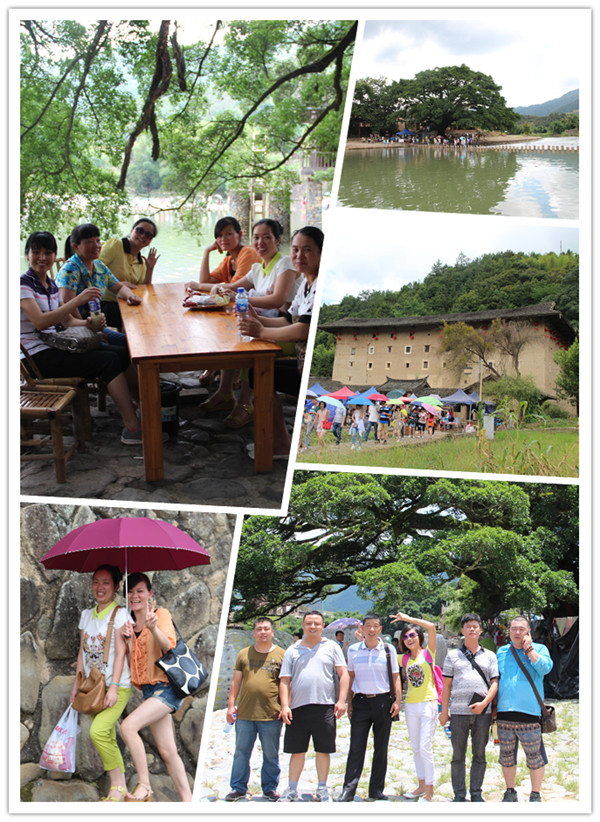 骄阳当头,田园如画,大家实地感受了美丽的乡村“云水谣”,了解了这里一支特殊民系——客家人,重点参观了他们智慧的结晶 ——建在沼泽地上的和贵楼及东倒西歪的怀远楼。前人种树,后人乘凉,在古老的大榕树下,小河流边,讲解员详细的解说,把全体人员的思绪带回了那个在异地努力生活并团结起来用勤劳双手建设自己美好家园的客家人奋发向上的时代。