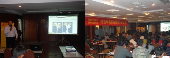 高安是养猪大市,全市能繁母猪存栏数在十万头以上,居江西省市级单位首位。本次会议正是以“打造母猪繁殖障碍专业品牌”为主题,公司技术部总监郭金权博士专门针对《母猪繁殖障碍之子宫内膜炎的防治》作了精彩的技术推广,因地制宜地针对高安市当地猪病防控提供对策及治疗方案。以现场互动的沟通方式使客户更全面、直观的认识到奥姆龙公司产品的特性、疗效和正确使用方法。
