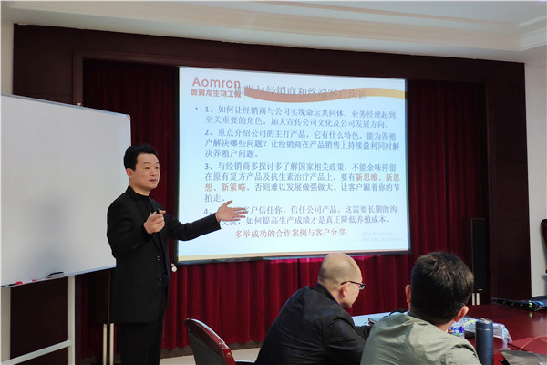 由技术总监叶?;鹘驳摹犊蒲茄芾怼?,旨在让各区域经理全方位地了解公司产品的优势,及主要的猪场疾病种类,对各区域经理开发市场提供了强有力的技术保障,培训深入浅出,博得阵阵掌声。