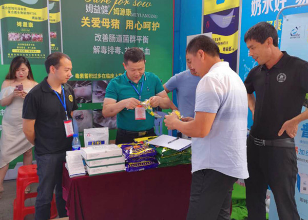 公司技术部老师徐见光为前来参观的客户提供了专业的技术咨询,并为养殖户提供了众多高效实用的产品使用方案??突Ф怨镜哪钢硐盗胁泛臀⑸萍敛凡伺ê竦男巳?,并给予了高度的评价。