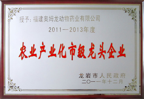 祝贺奥姆龙荣获“2011-2013年农业产业化市级龙头企业”荣誉称号