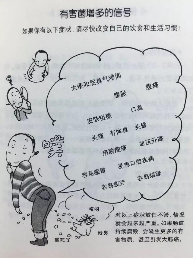 中医则管大肠里对人体不好的垃圾、毒素叫积食或热毒,叫法不一样,但让人体功能异常,产生的不良症状都是一样的。因此,一定要让大肠保持通畅,如果有害菌、热毒多了,就会是这样: