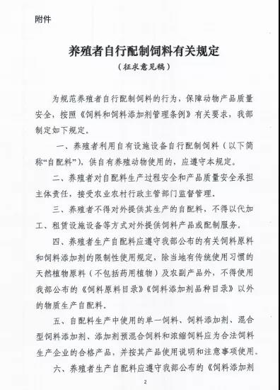 农业农村部畜牧兽医局关于《养殖者自行配制饲料有关规定》公开征求意见的通知