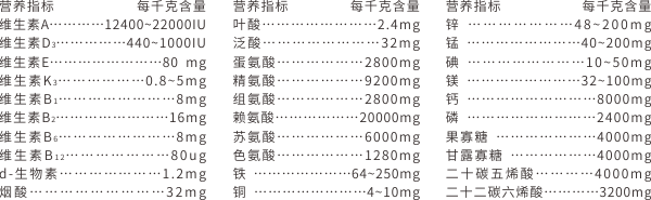 【原料组成】赖氨酸、蛋氨酸、精氨酸、亮氨酸、组氨酸、色氨酸、鸡肉粉、深海鱼油、椰子油、亚麻籽油、复合维生素、常量矿物质元素、复合微量元素、果寡糖、纯化水等。