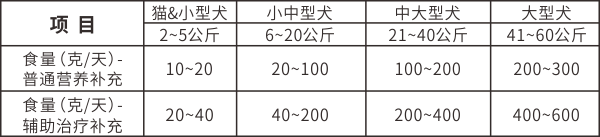 2、用于其它营养缺乏的辅助治疗:单独饲喂或和主粮拌喂,推荐剂量为体重的0.5%~1%;