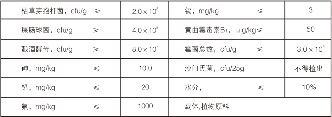 【原料组成】枯草芽孢杆菌、屎肠球菌、酿酒酵母、载体植物原料。
